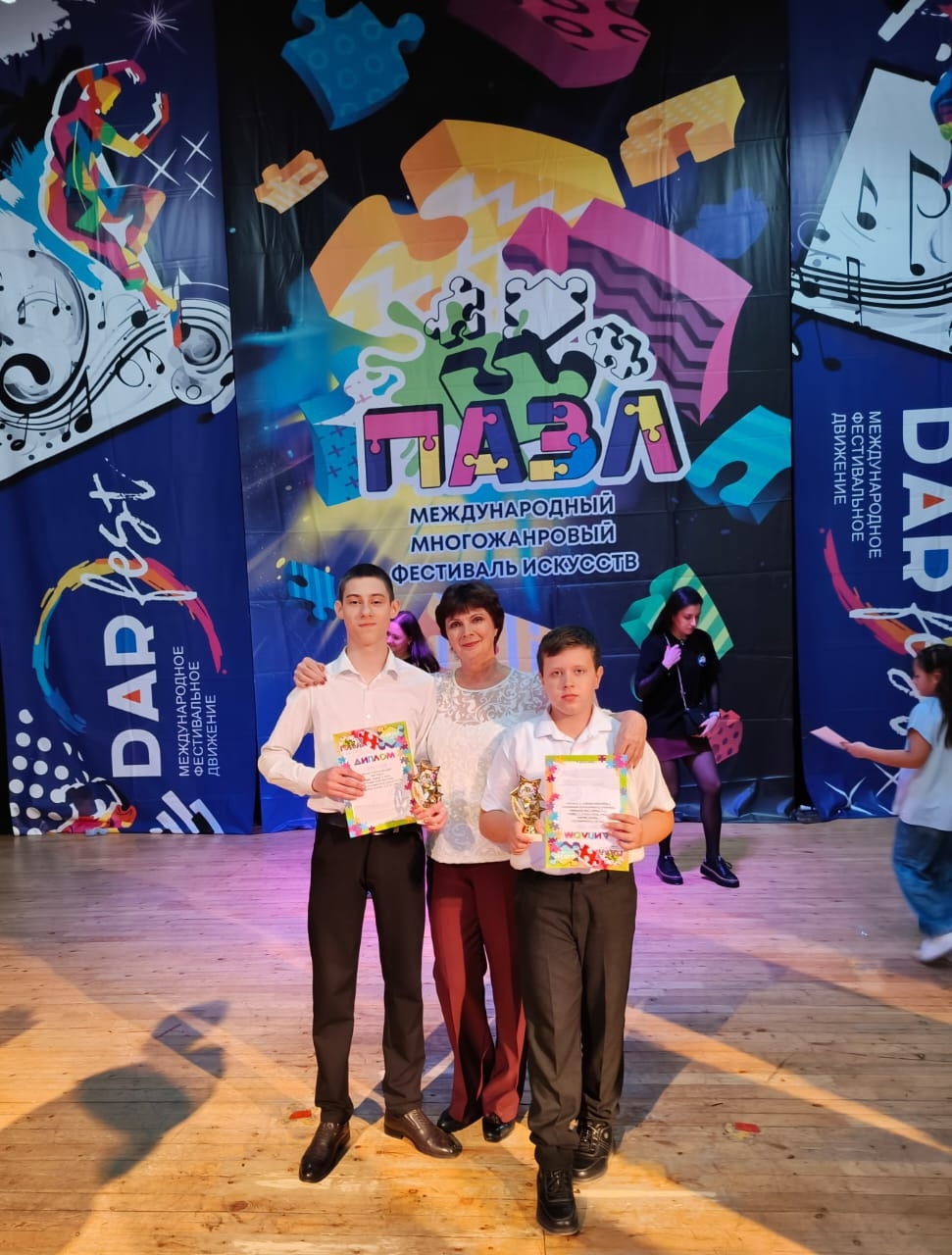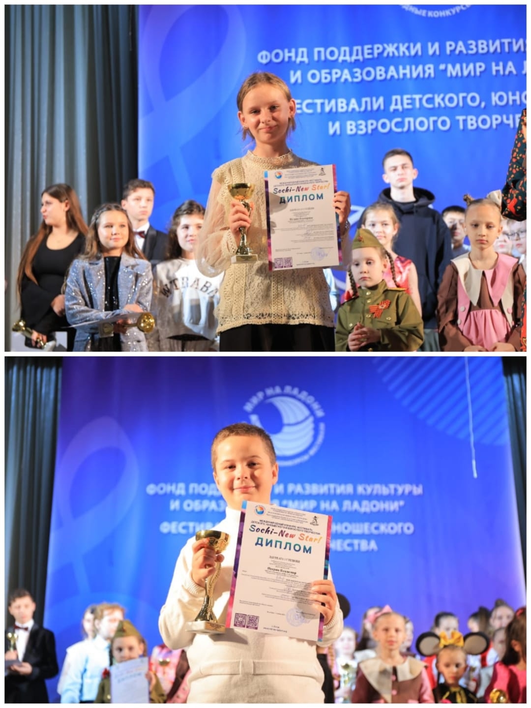 и ее обучающихся Петрик Екатерину(Лауреат 2 степени) и Петрик Владимира(Лауреат 1 степени) с победой в Международном конкурсе - фестивале детского и юношеского творчества «New Star»